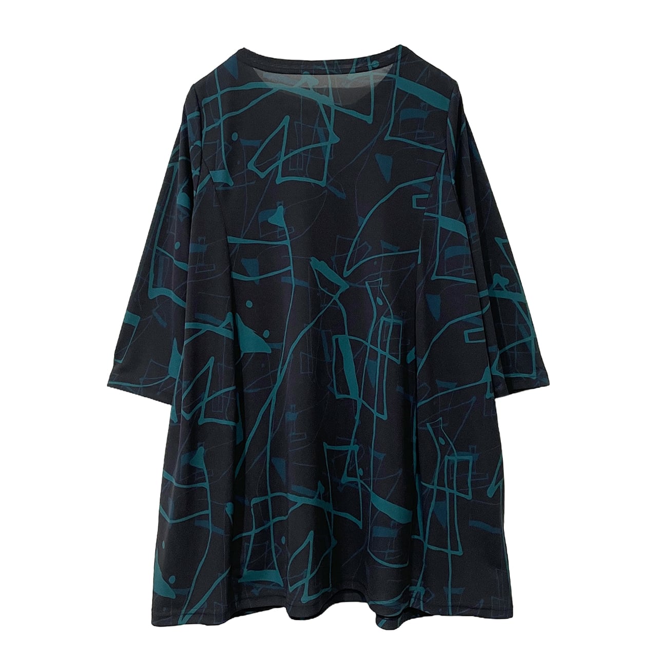 【新作】ペインティングプリント 強撚スムースチュニック【254-3208】