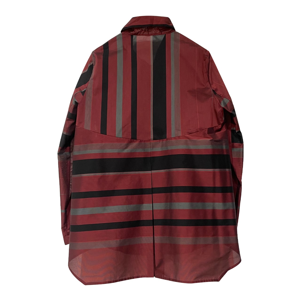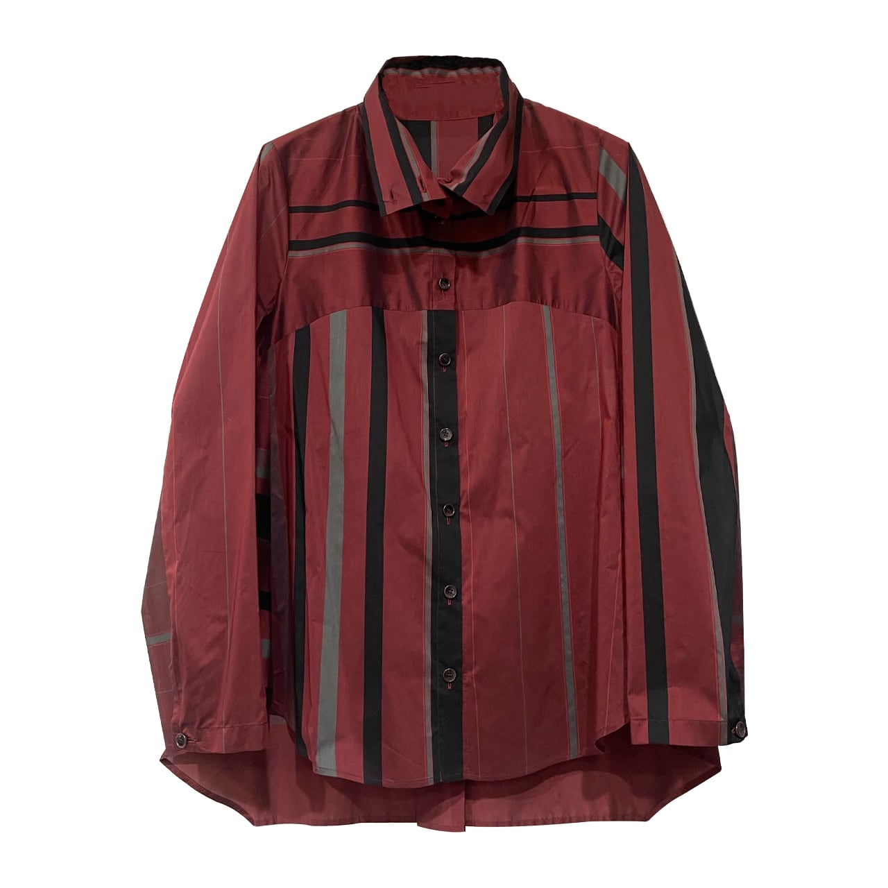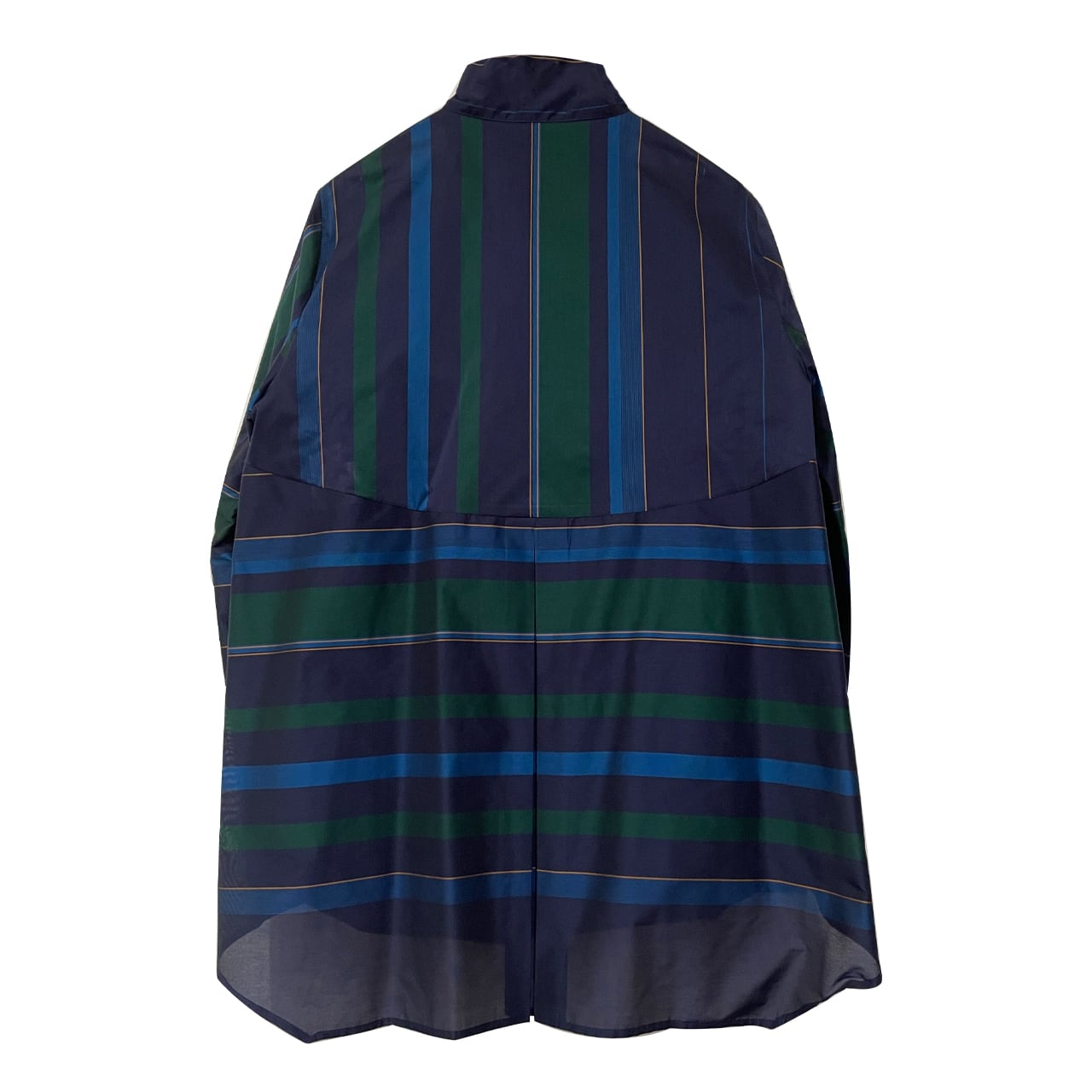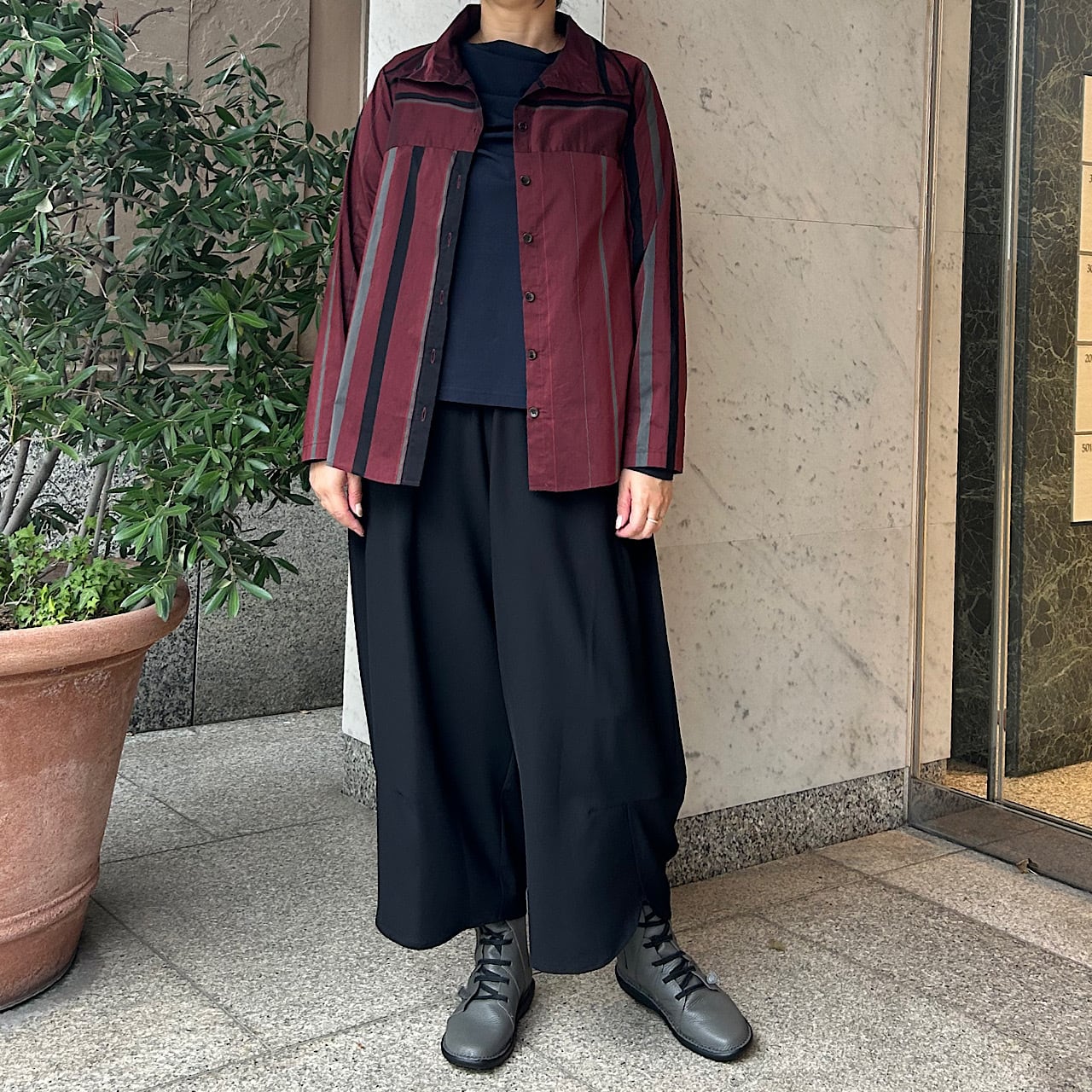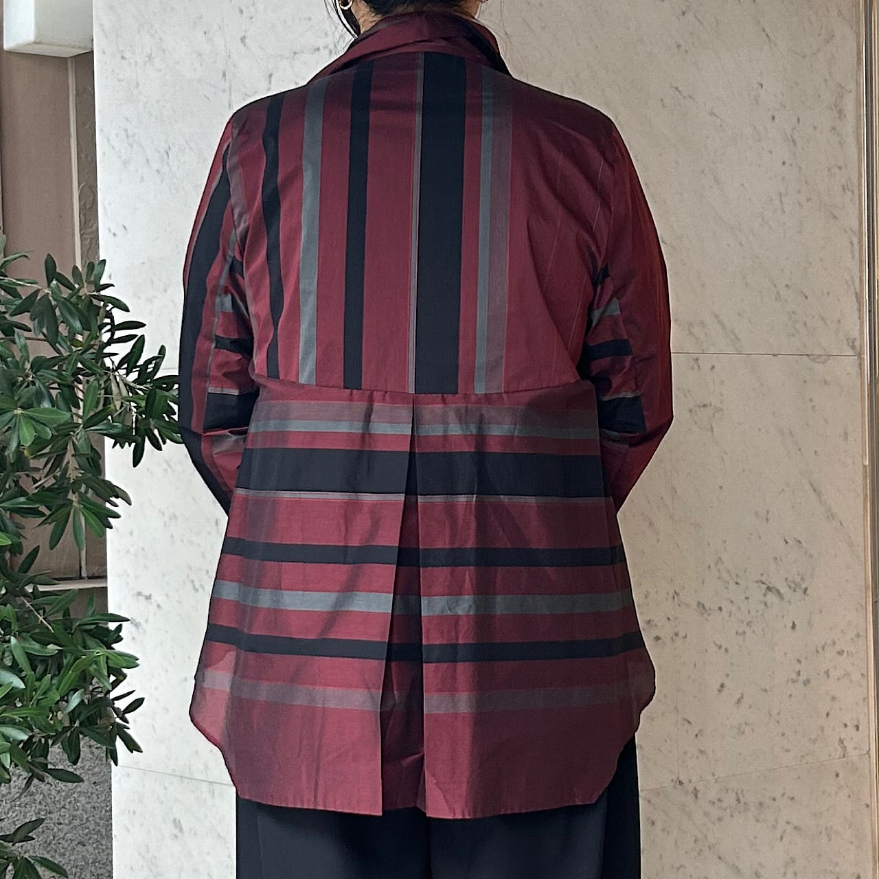 【新作】コットンライトタフタ パネルボーダースタンドカラーブラウス【254-1120】