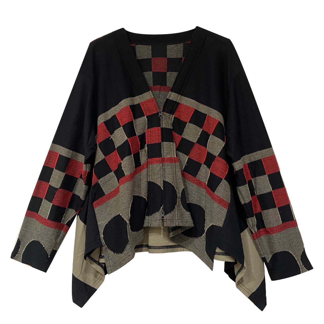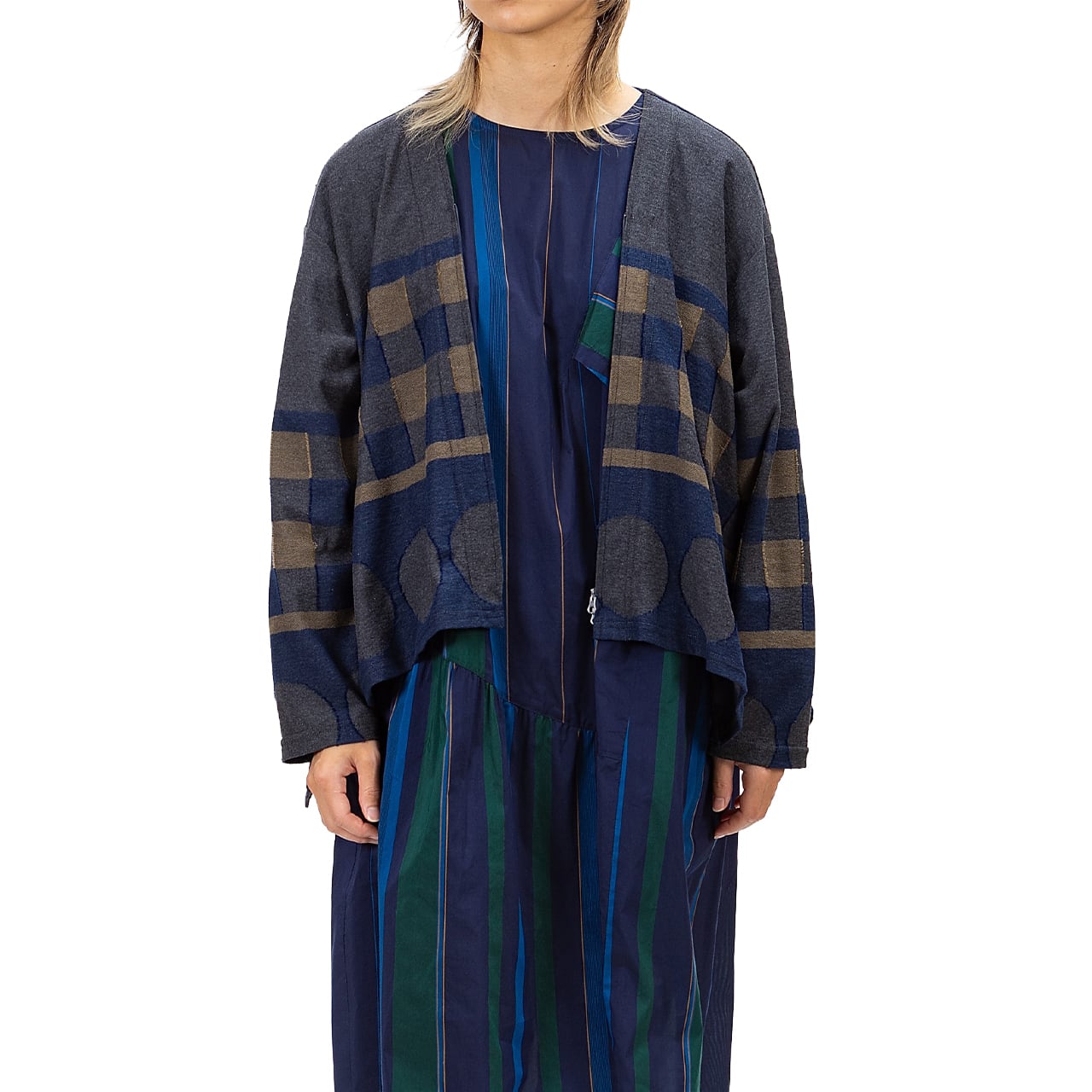【新作】水玉&ブロック/インレーインターシャカーディガン【254-2221】