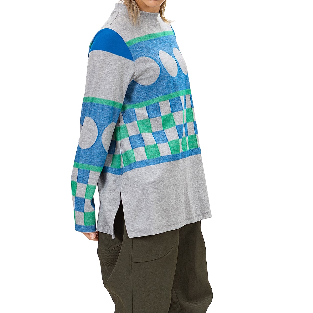 低めハイネックのプルオーバーは長すぎないチュニック丈。