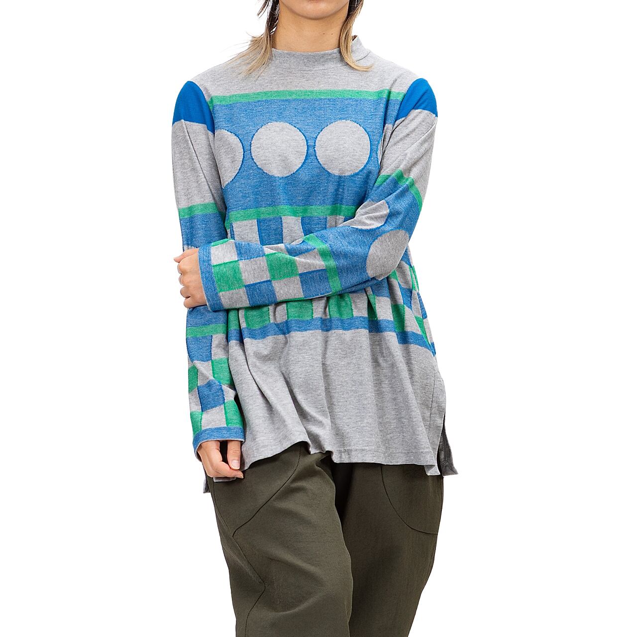 【新作】水玉&ブロック インレーインターシャチュニック【254-3222】