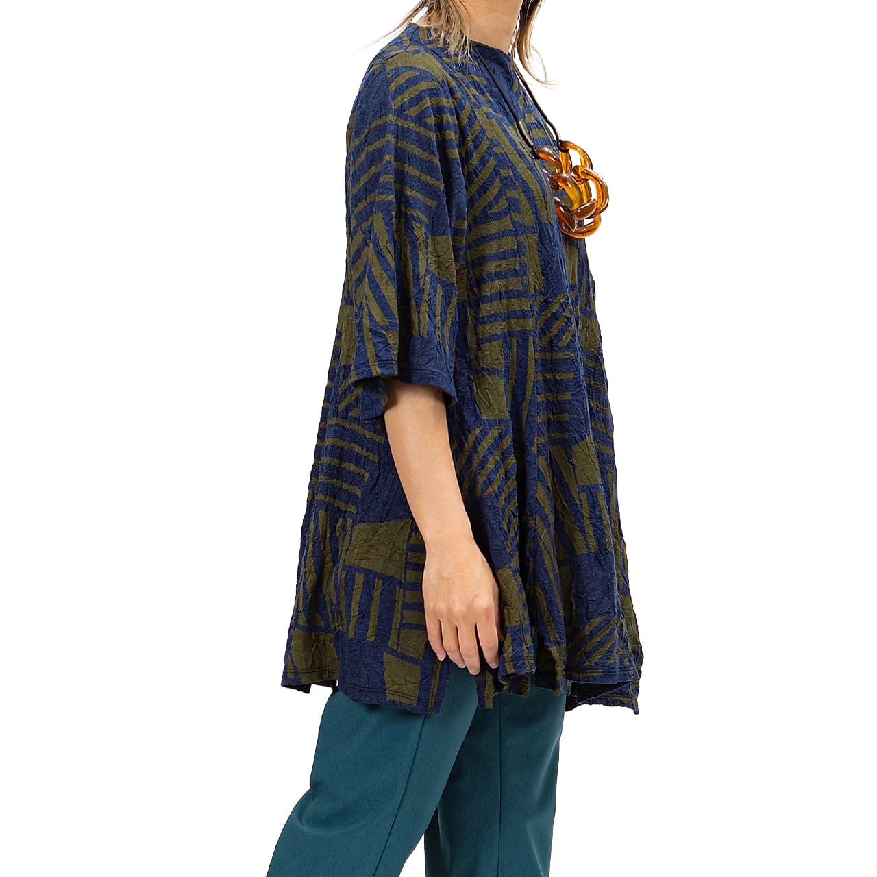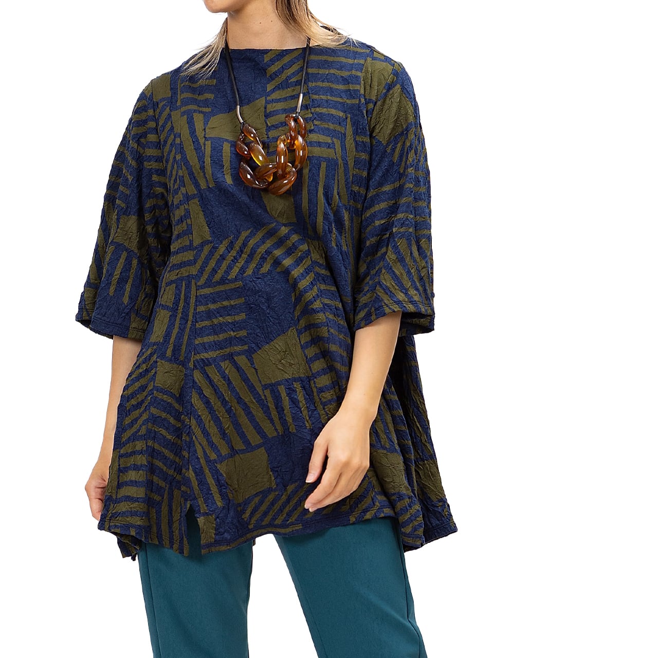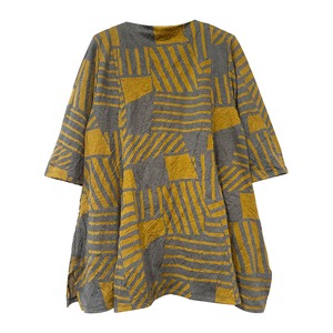 【新作】ボーダーパッチワーク キャッチワッシャーチュニック【254-3238】