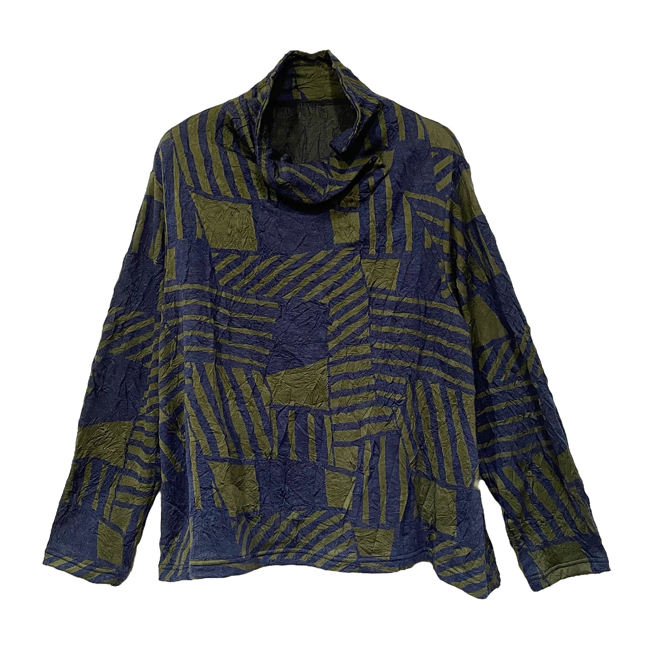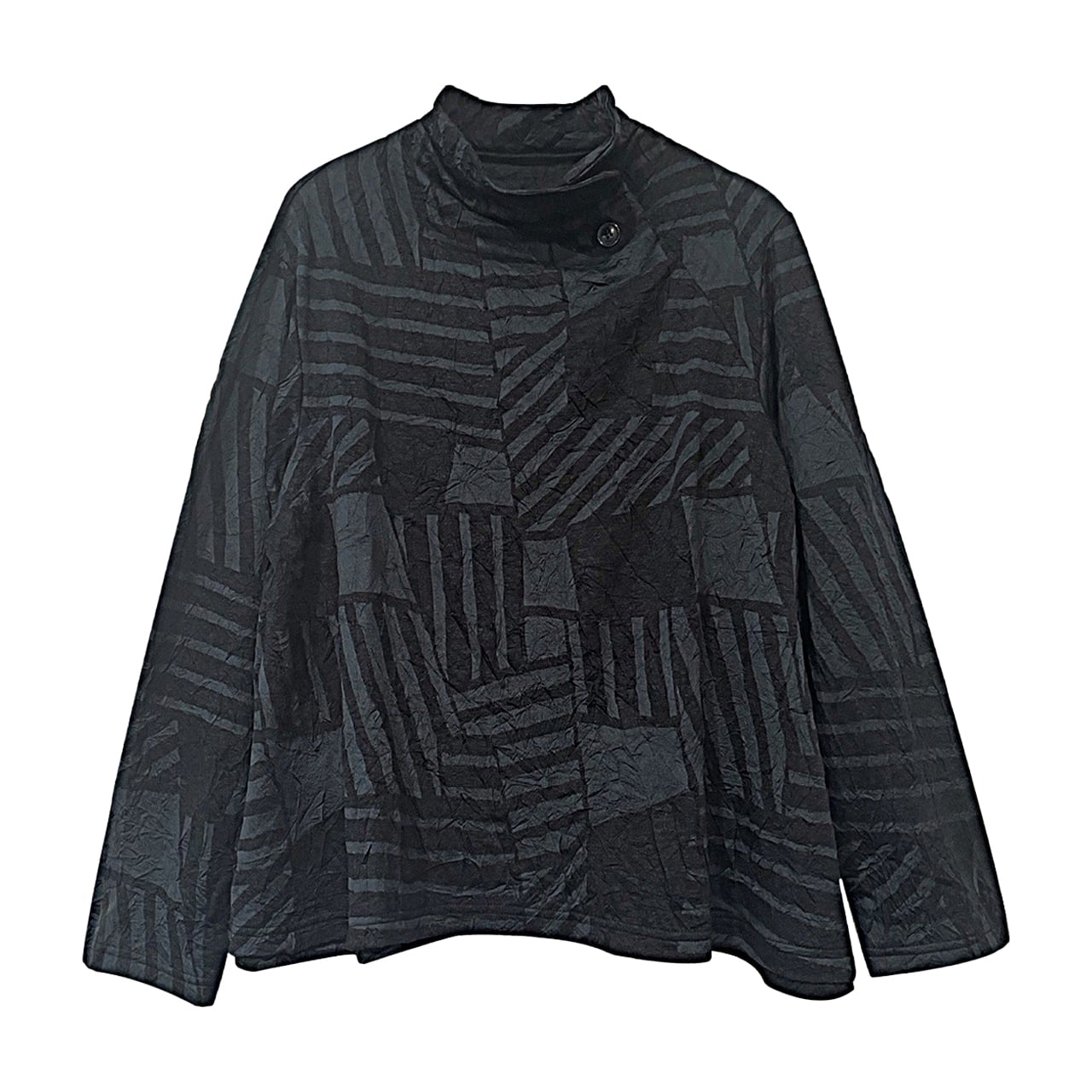 低めのハイネックでボタンがアクセント。