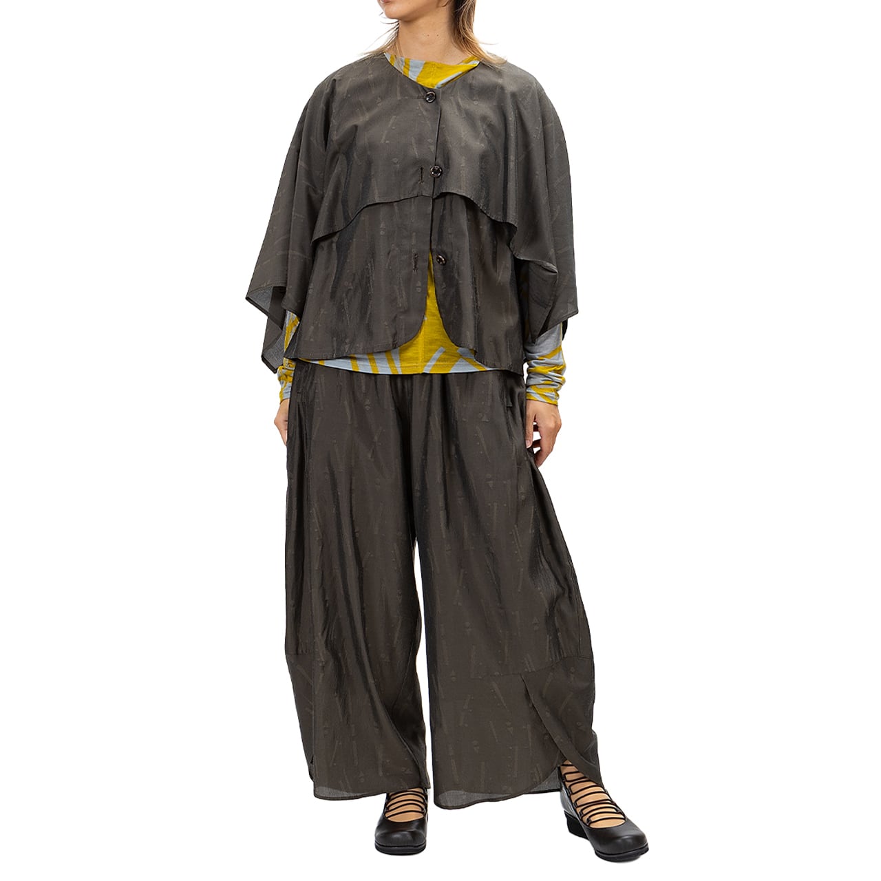 ケープ調ディテールのブラウスはジャケット見えもする上品な仕上がり。