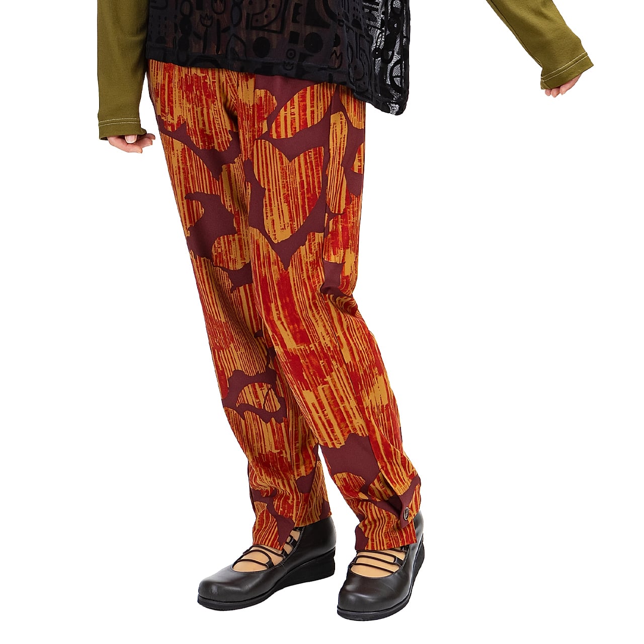 オリジナルの手描き風プリントを施した意匠ボトム。