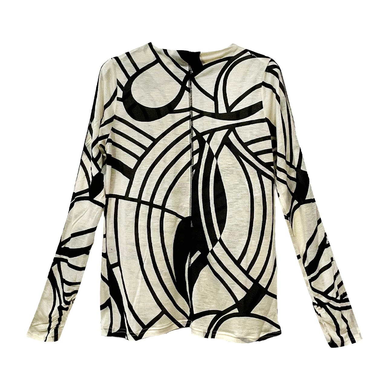 【新作】ガーゼ天竺 流線柄プリント ボートネックプルオーバー【254-3235】