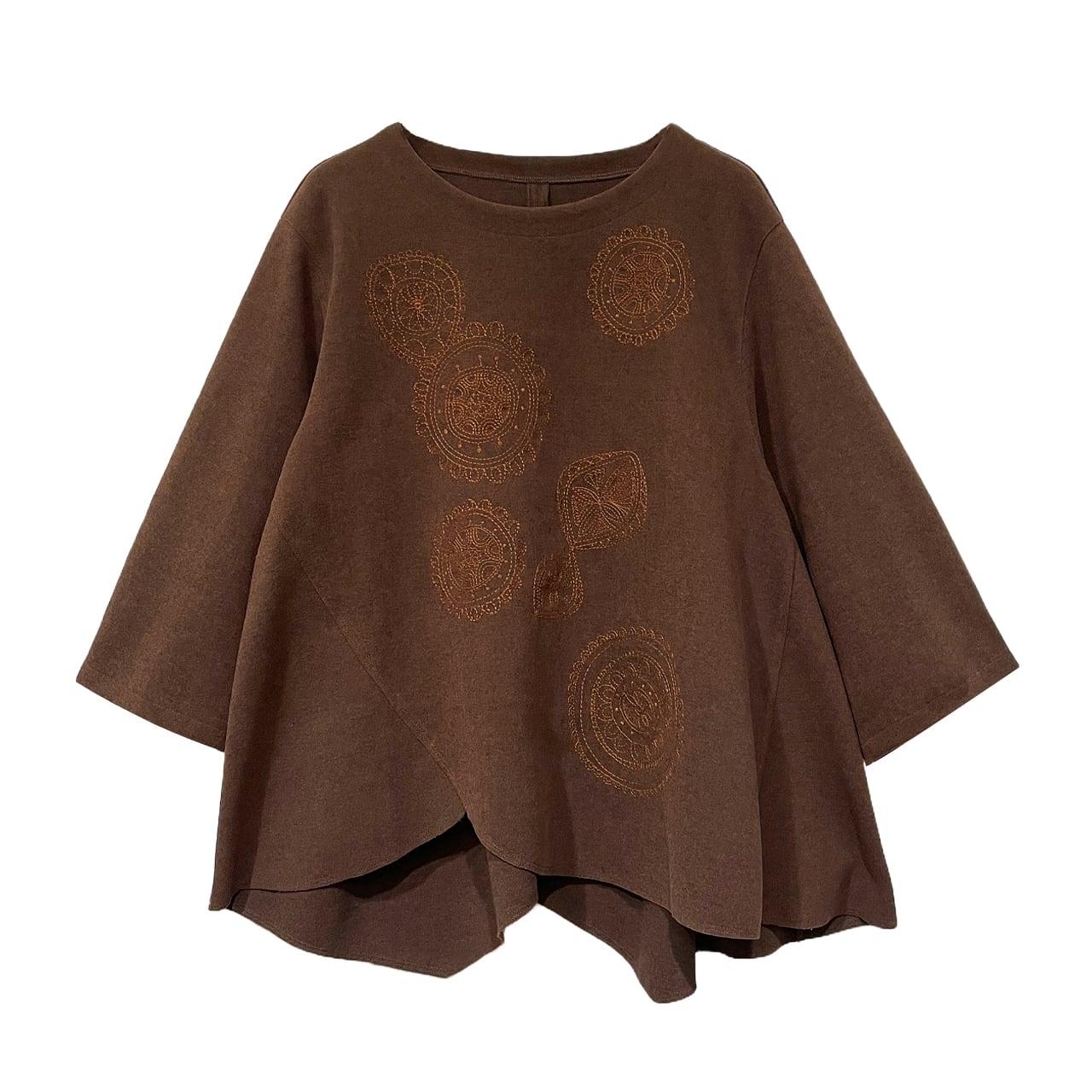 【新作】スエード調コンプレス サークルレース刺繍 プルオーバー【254-3258】