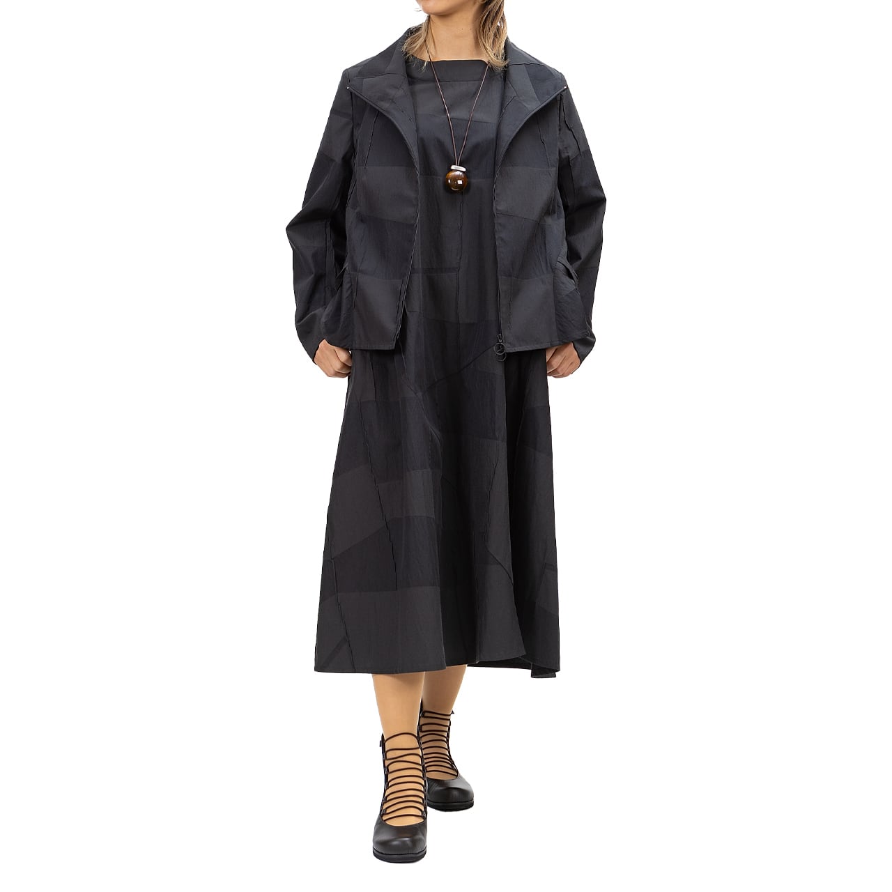 ポリエステル綿をベースにブロックボーダーとピンタックをアレンジしたタフタジャガード。