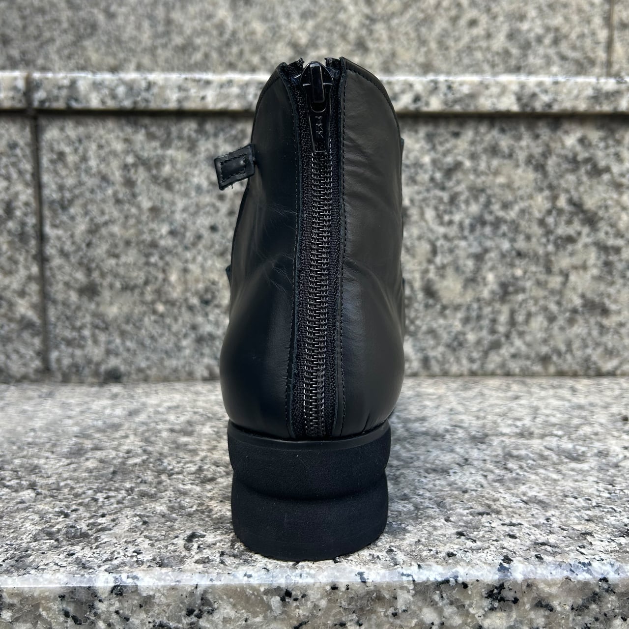 しなやかなブラックレザーにバレエシューズをイメージさせるフラットなシューズ。