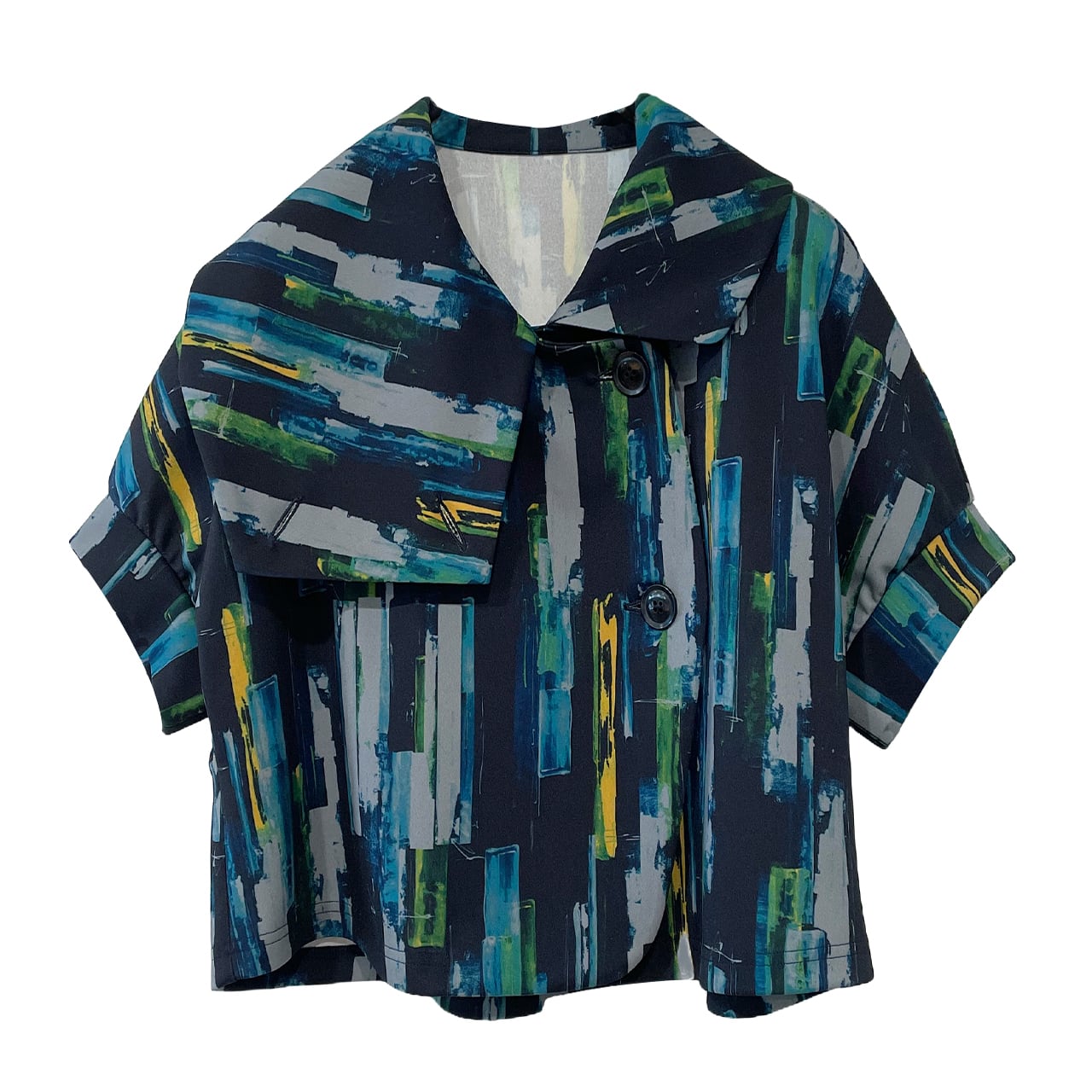 【最新作】アブストラクトプリント コンパクトジャケット【256-4205】
