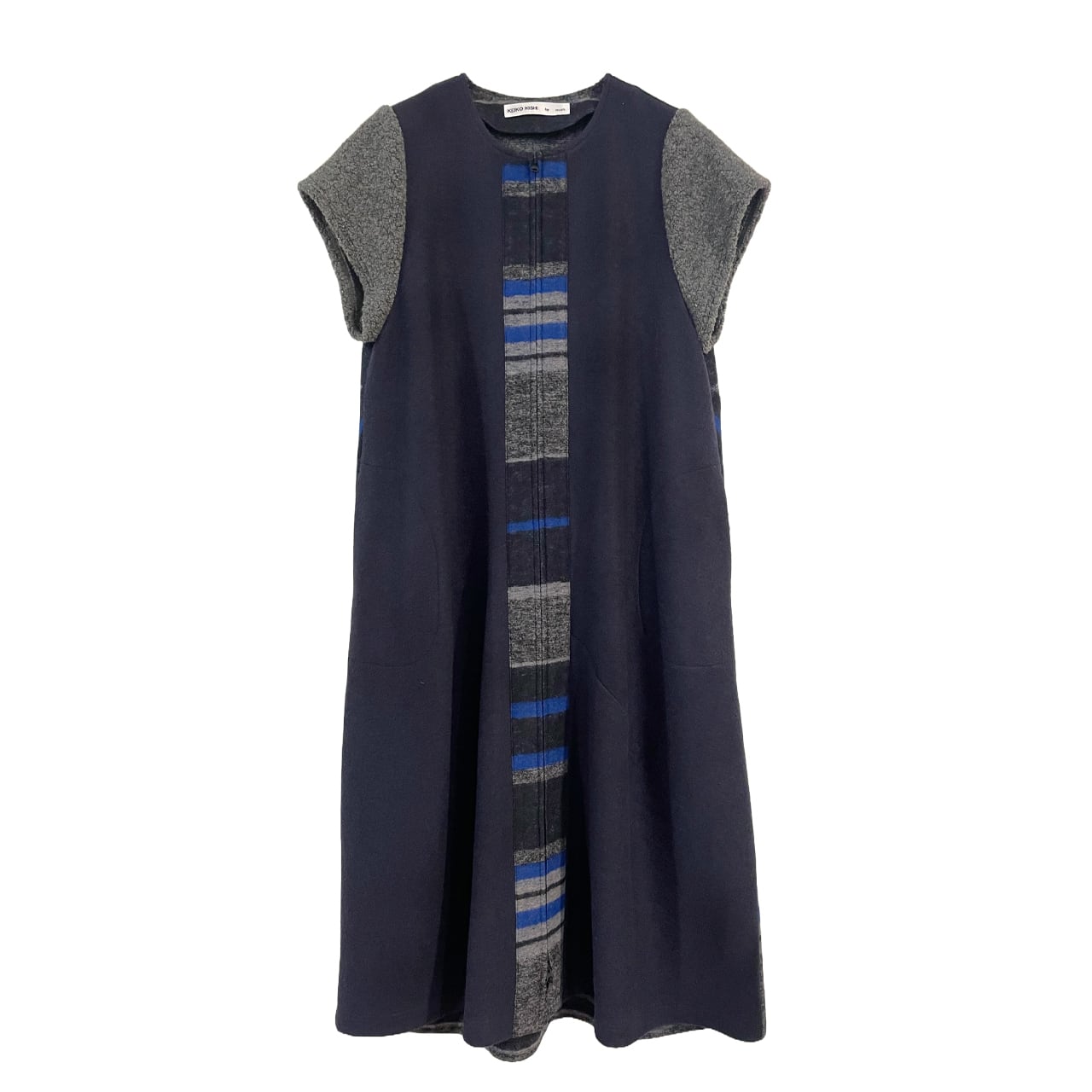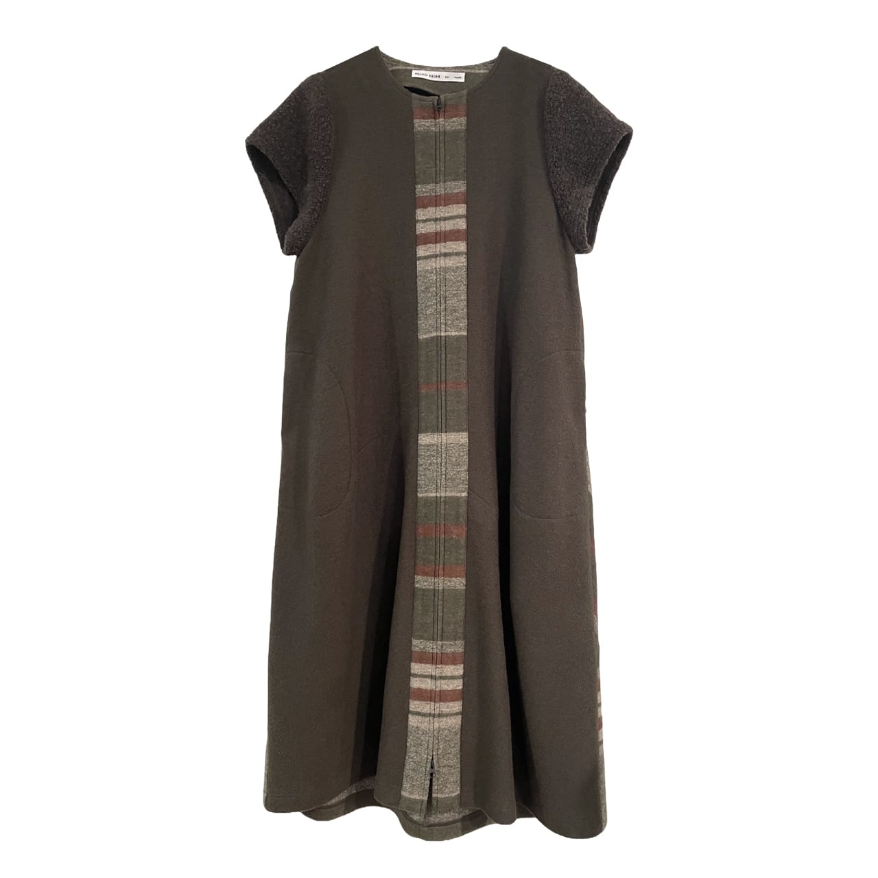 ジップアップのワンピースはジャンドレ着用したり、ロングジレ風に重ね着したり、