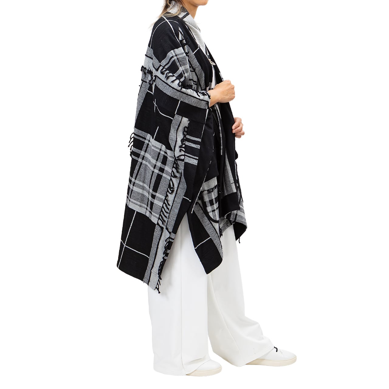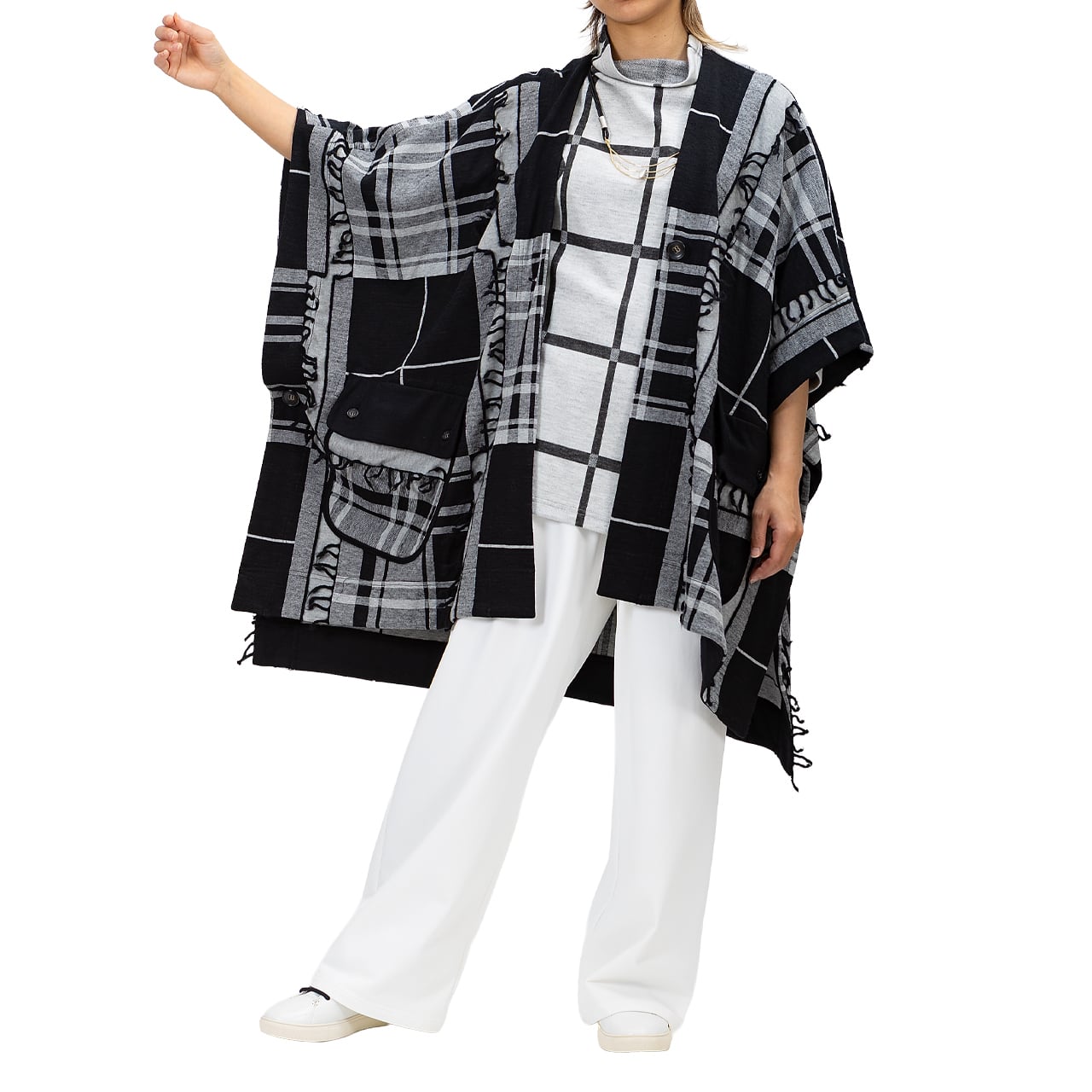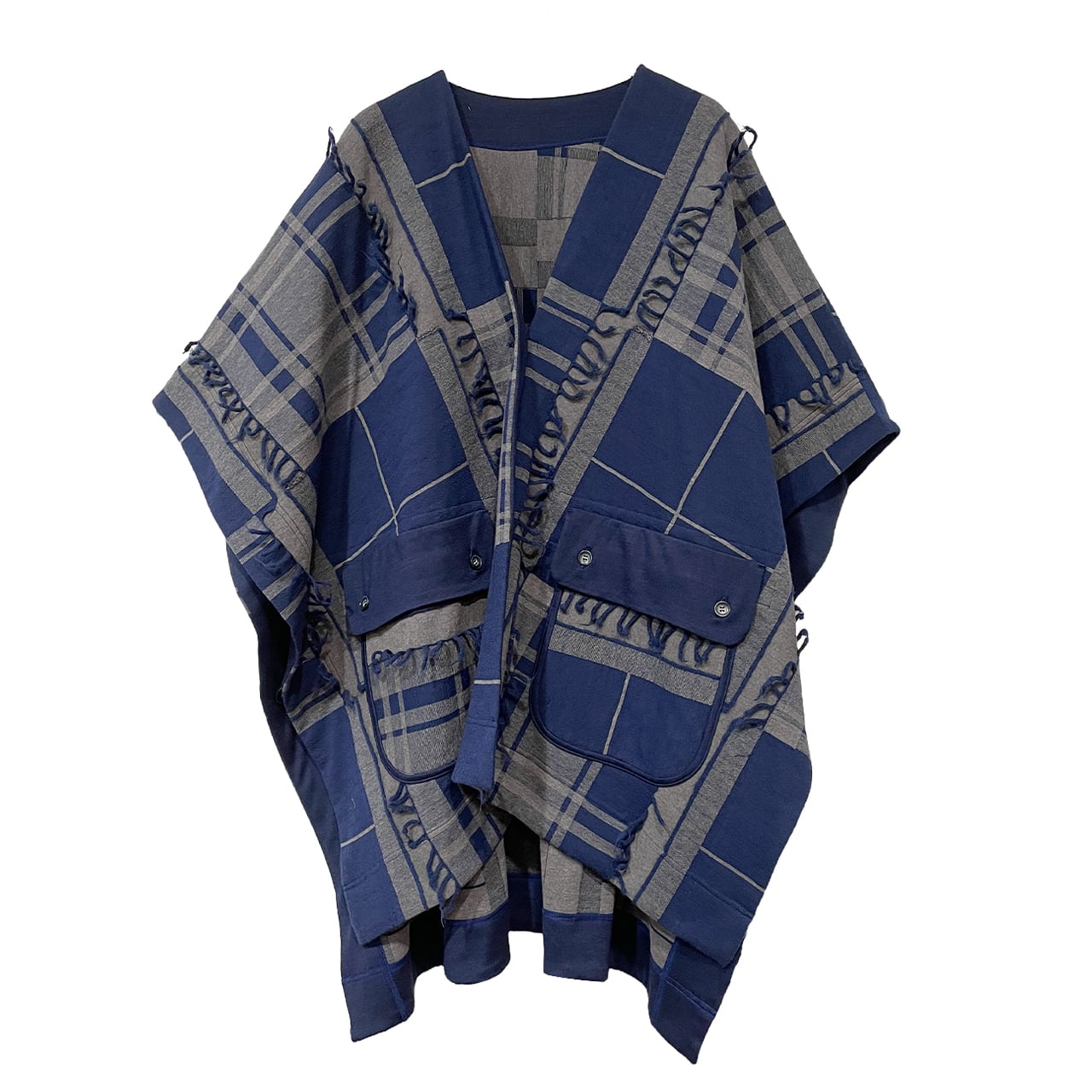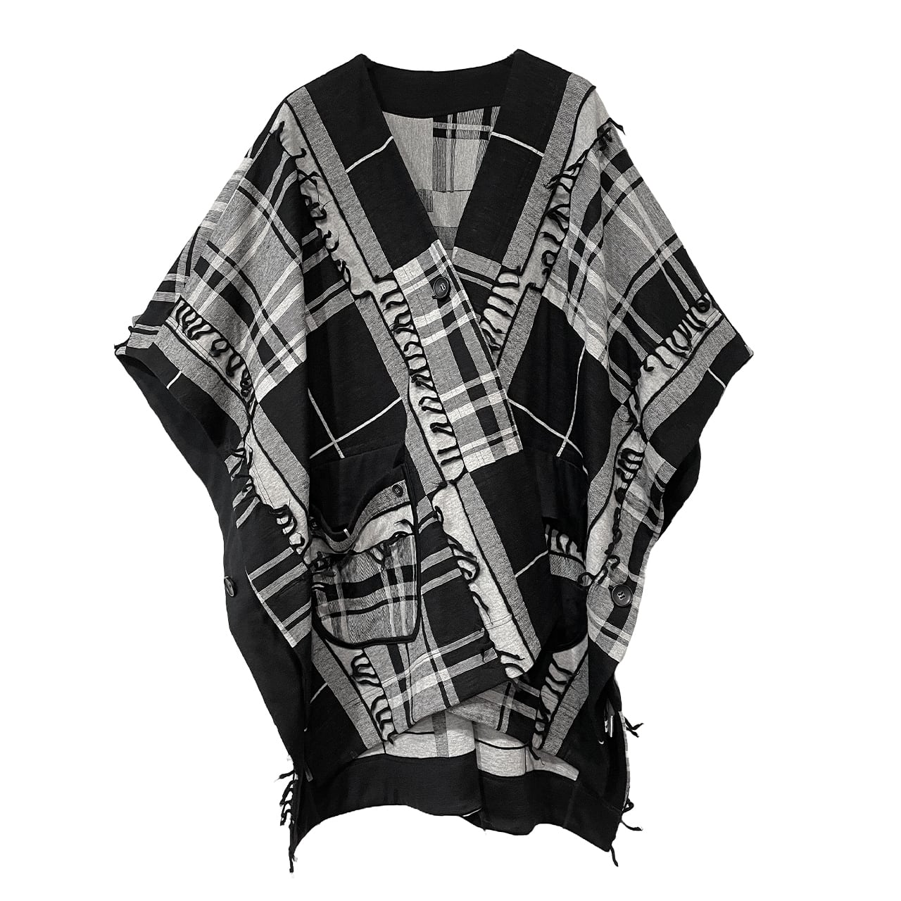 【最新作】フリンジビッグチェックポンチョ【256-4234】
