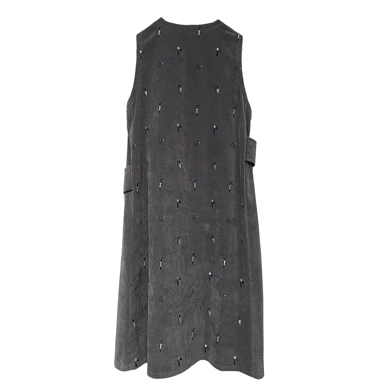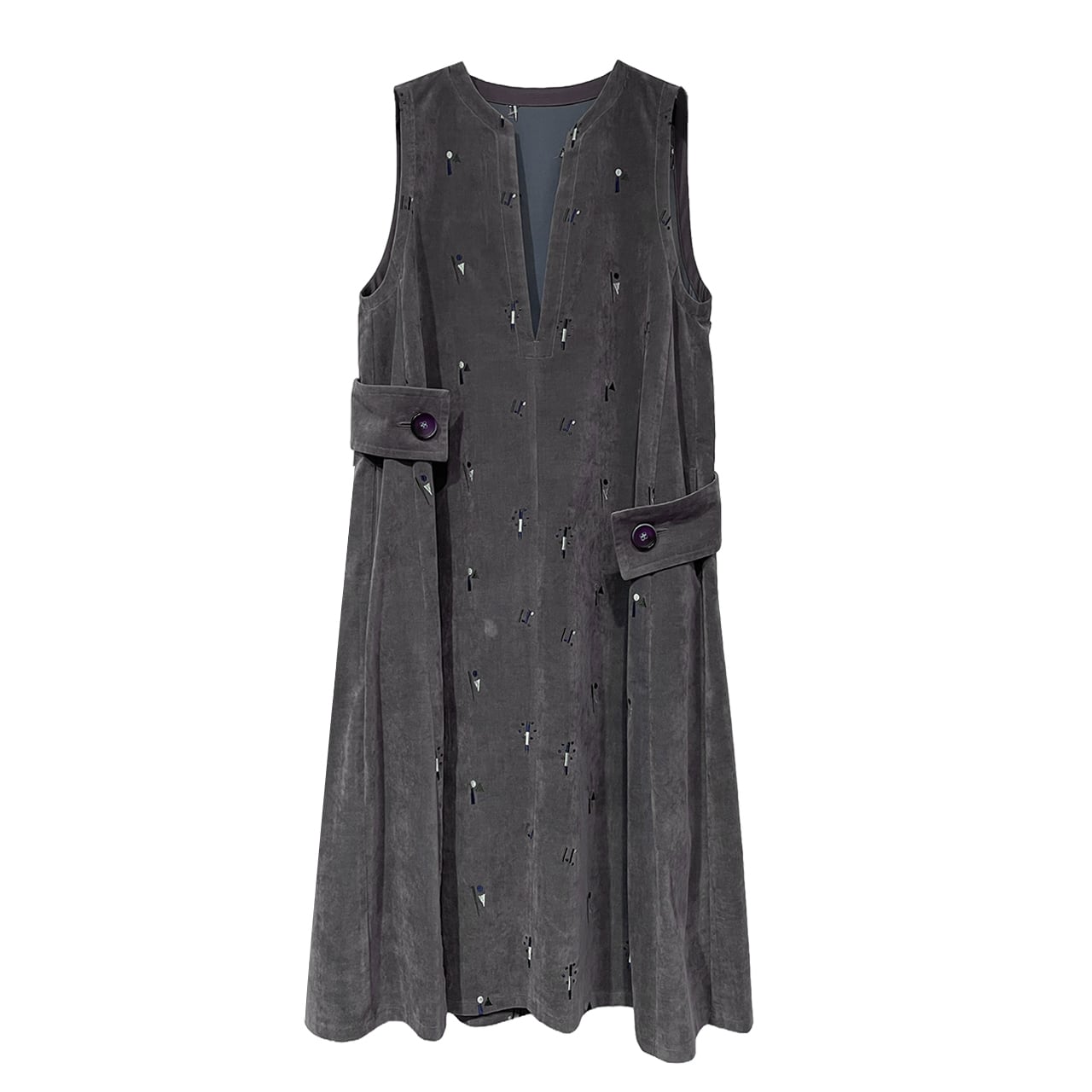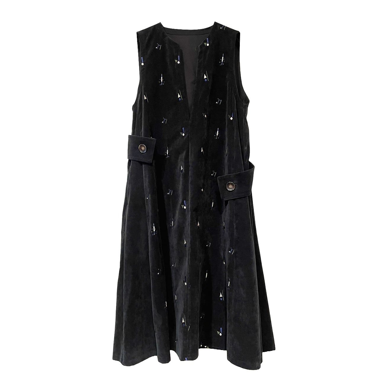 【最新作】シャンブレーベルベット 飛び柄刺繍ジャンパードレス【256-7146】
