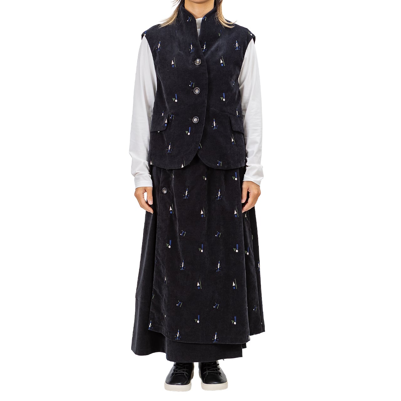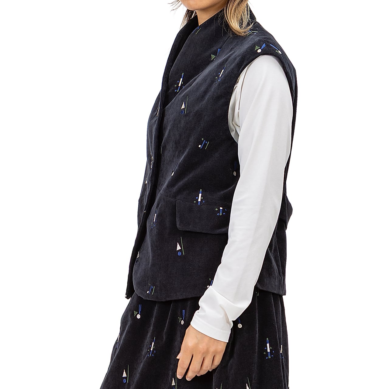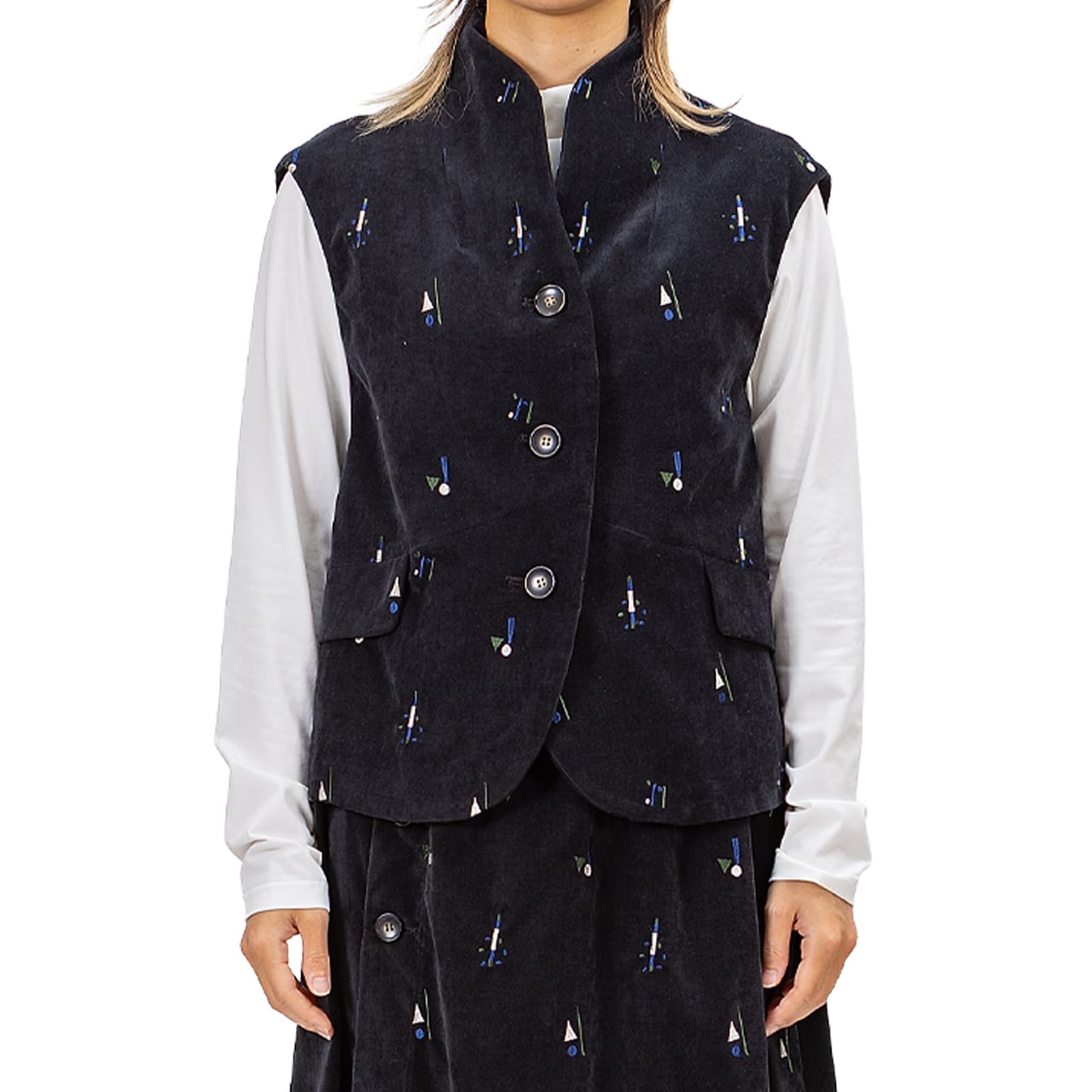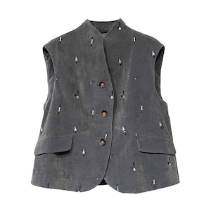 【最新作】シャンブレーベルベット 飛び柄刺繡ベスト【256-9147】