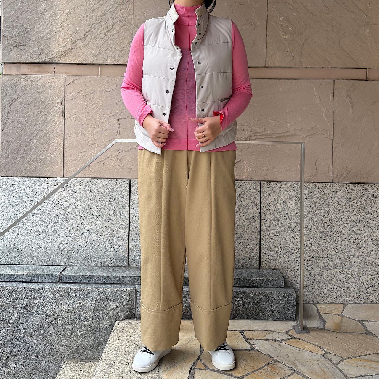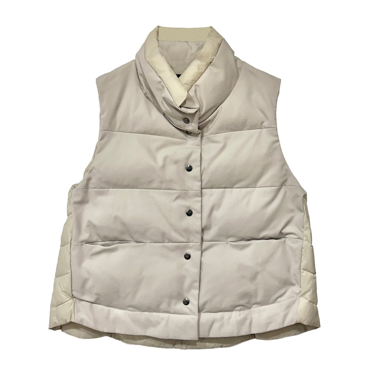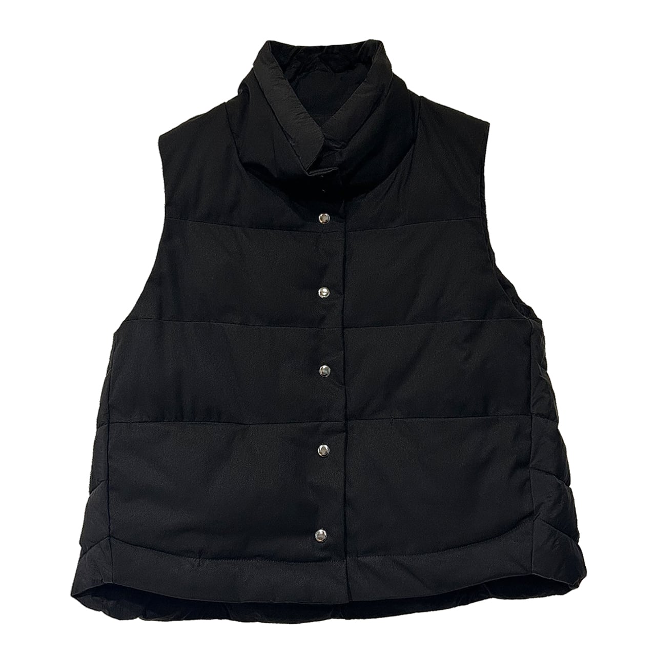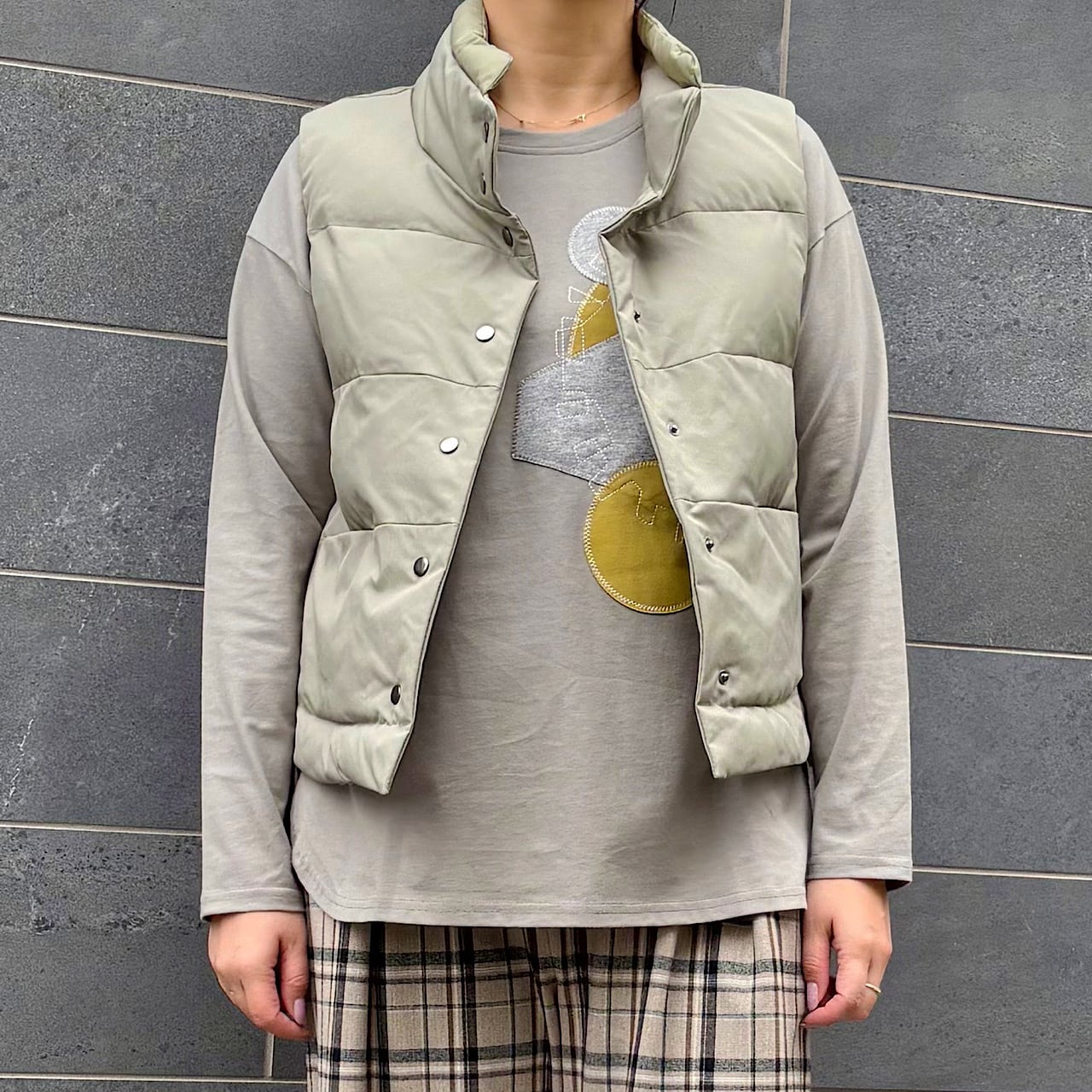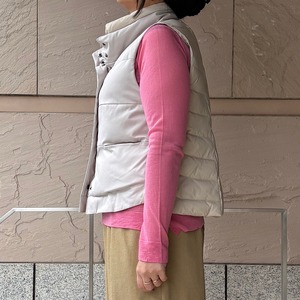 端境や気温調整に便利なダウンベストは着合わせし易いスタンダードデザインで