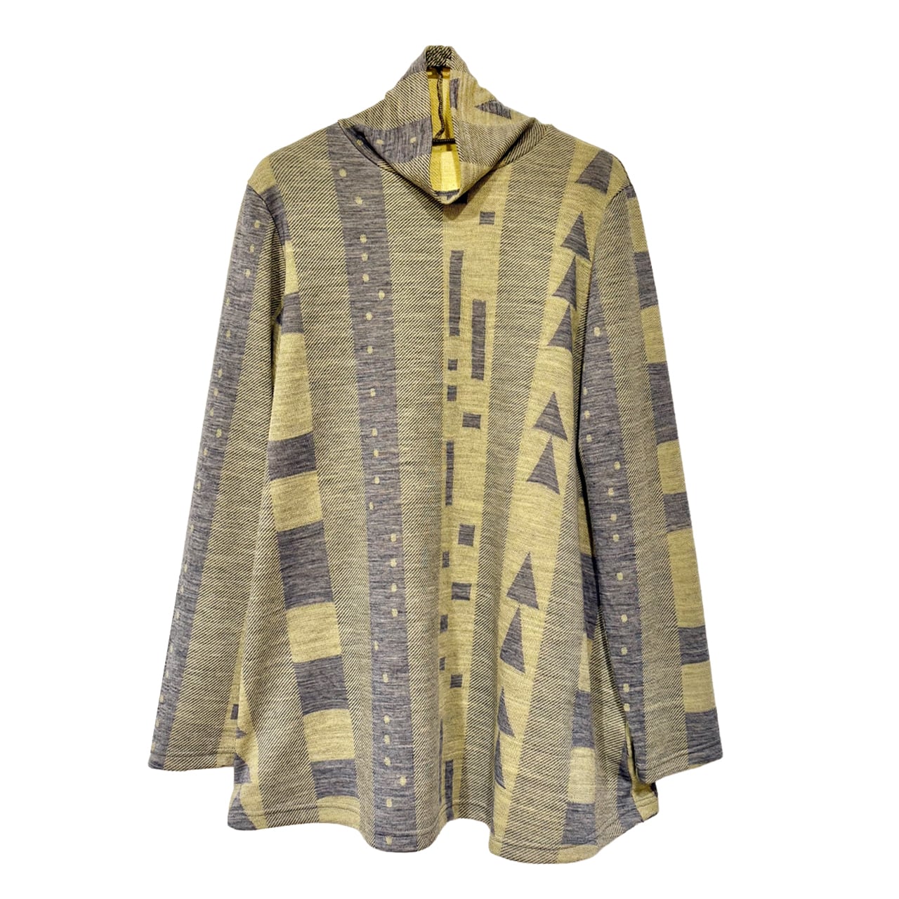 バイカラーで表現されたオリジナルモチーフ、ニット代わりのトップスとして汎用性の高い素材感です。