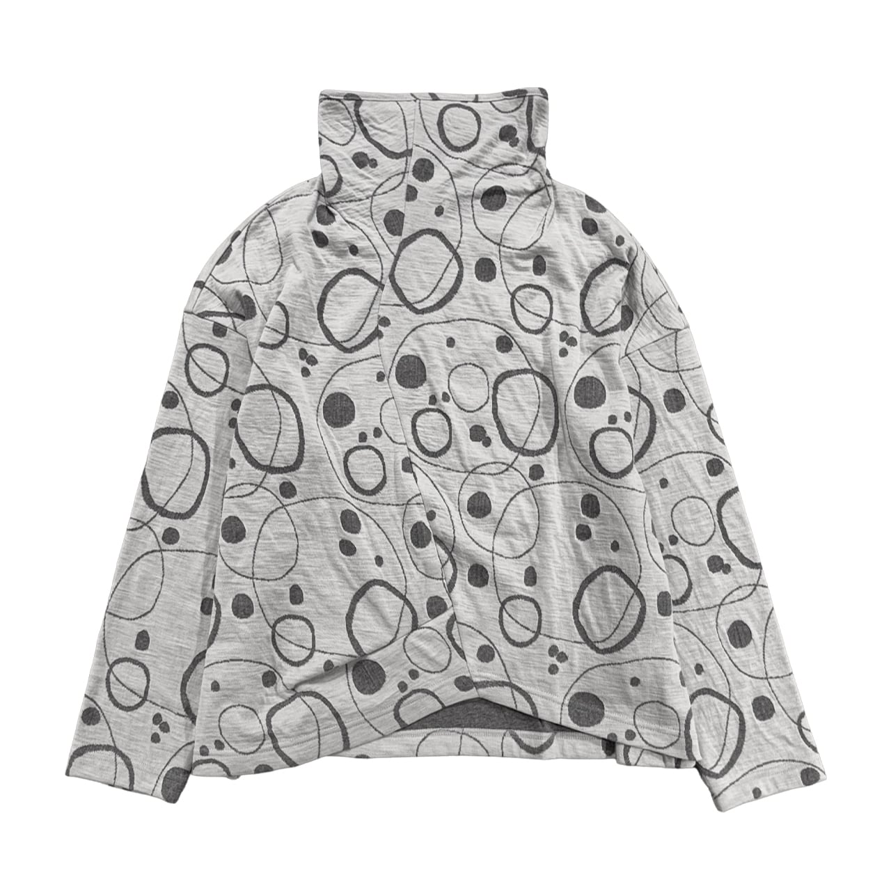 イレギュラーなカッティングやタック使いが特徴のボトルネックプルオーバー。