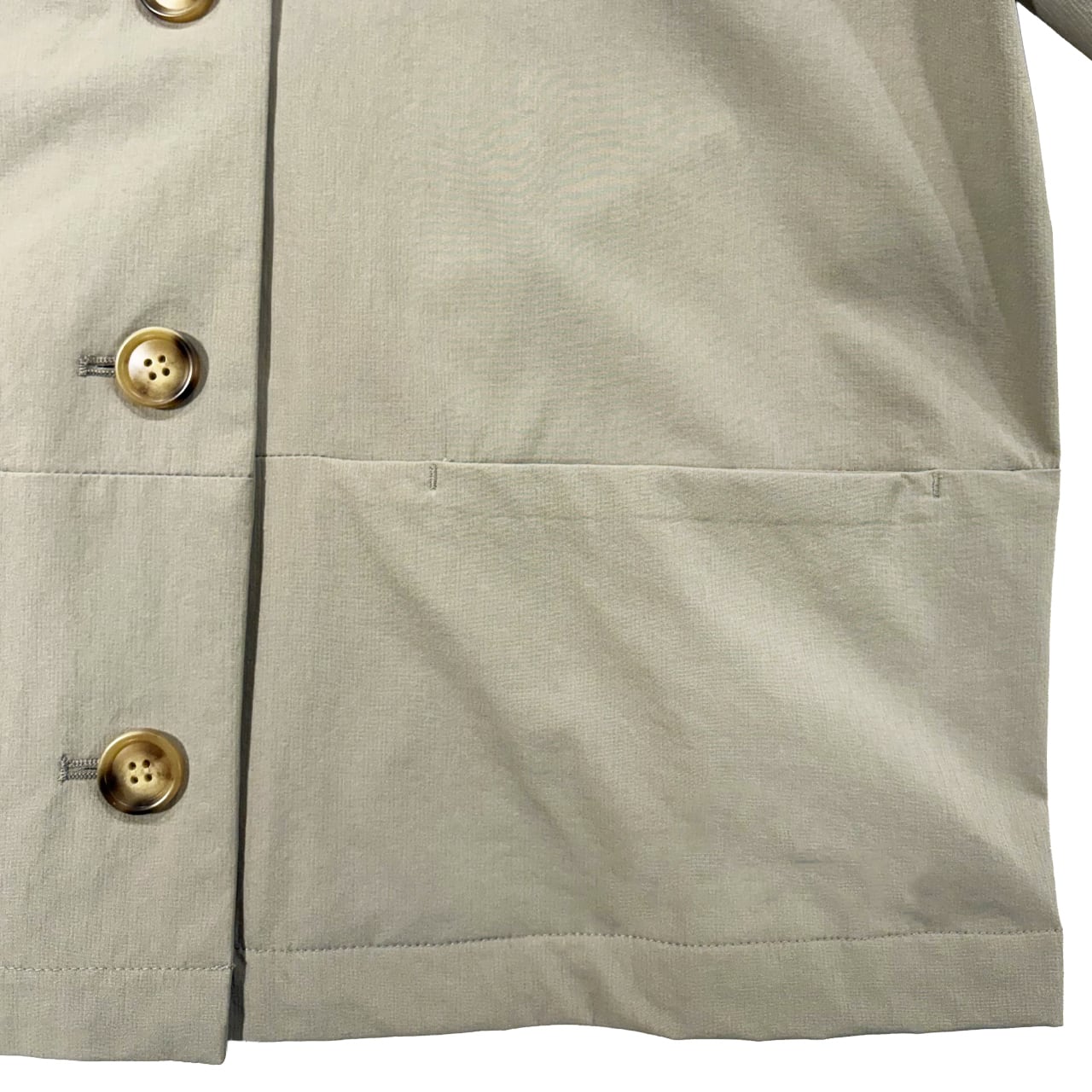 ソフトなナイロンストレッチ合繊素材。3シーズン着られる中肉タイプの素材感です。
