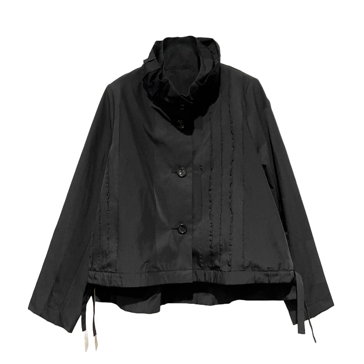 衿元にボリュームを持たせたAラインのジャケット。